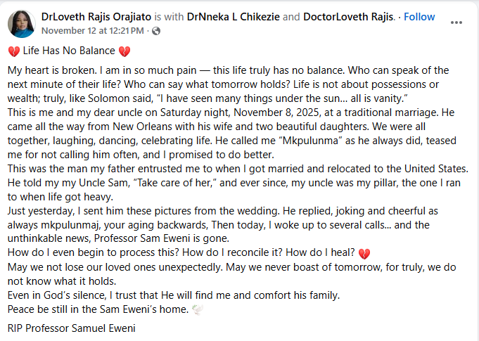 “Dr. Eweni was more than an educator—he was a mentor and a guiding light to so many of our students,” said Dr. Joseph Bouie, Jr., Chancellor of Southern University at New Orleans.